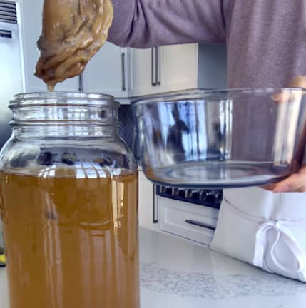 - Add the starter and last the scoby.