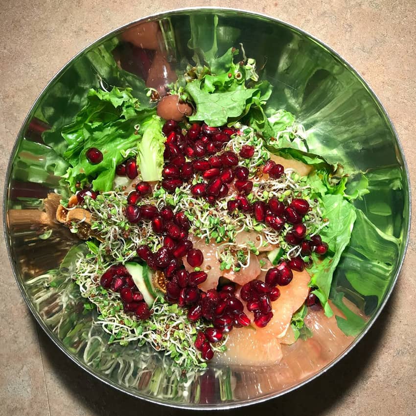 When I suggest making a “salad,” I refer to all kinds of greens. I mean, arugula, Boston, green leaf lettuce, red leaf lettuce, romaine, escarole, radicchio, spinach, kale, watercress and of course my favourite broccoli sprouts. All these leaves are full of minerals and vitamins.